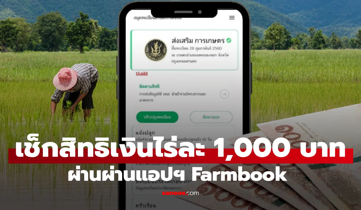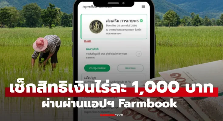 - ช่องทางอื่น ๆ ตรวจสอบผ่าน ATM, สมุดบัญชี หรือบริการ SMS Alertตรวจสอบสิทธิเงินไร่ละ 1,000 บาท ผ่านแอปฯ Farmbook