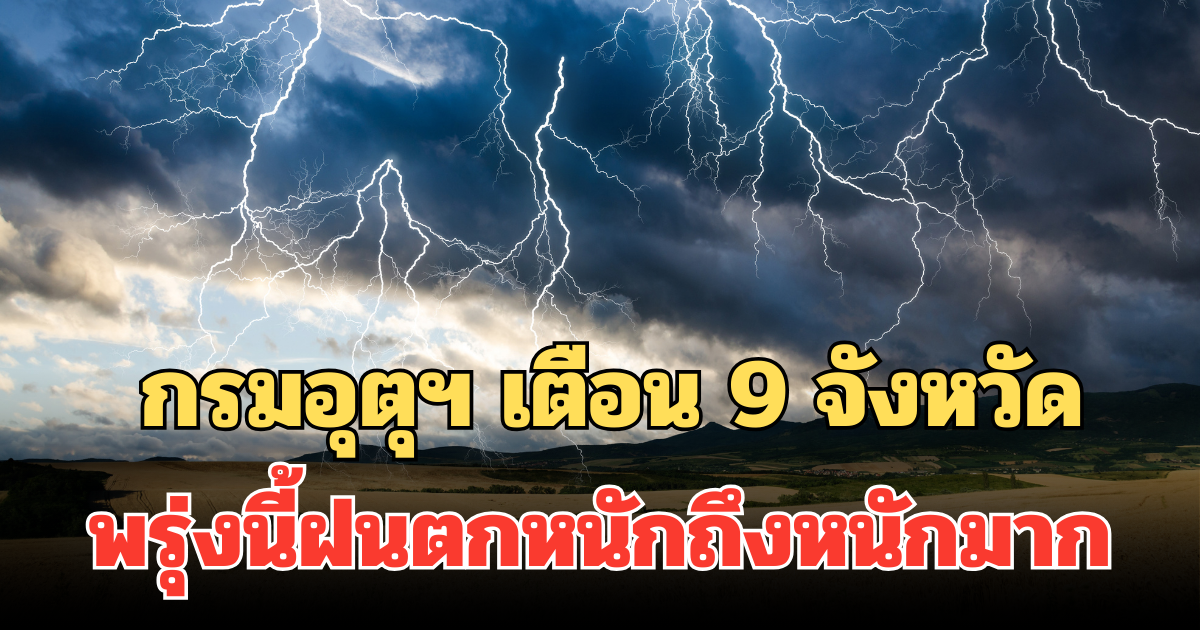 ประกาศแล้ว! กรมอุตุฯ เตือน 9 จังหวัด พรุ่งนี้ฝนตกหนักถึงหนักมาก