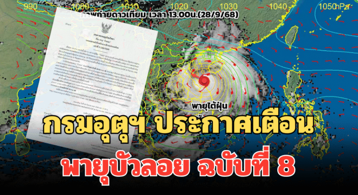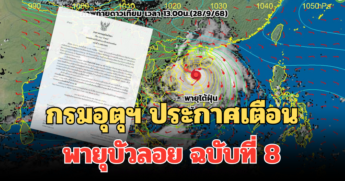 วันที่ 28 ก.ย.2568 ประกาศจากกรมอุตุนิยมวิทยา เรื่อง พายุบัวลอย และฝนตกหนักถึงหนักมากบริเวณประเทศไทย ฉบับที่ 8 (269/2568)เมื่อเวลา 16.00 น. ของวันนี้ (28 ก.ย. 68) พายุไต้ฝุ่นบัวลอย (BUALOI) บริเวณทะเลจีนใต้ตอนบน มีศูนย์กลางอยู่ห่างจากเมืองดองฮอย ประเทศเวียดนาม ไปทางทิศตะวันออกประมาณ 110 กิโลเมตร หรือที่ละติจูด 17.4 องศาเหนือ ลองจิจูด 107.7 องศาตะวันออก มีความเร็วลมสูงสุดใกล้ศูนย์กลางประมาณ 120 กิโลเมตรต่อชั่วโมง พายุนี้กำลังเคลื่อนตัวทางทิศตะวันตกค่อนทางเหนือเล็กน้อย ด้วยความเร็วประมาณ 20 กิโลเมตรต่อชั่วโมง คาดว่าจะเคลื่อนขึ้นฝั่งบริเวณประเทศเวียดนามตอนบน ในวันที่ 29 กันยายน 2568 หลังจากนั้นจะอ่อนกำลังลงตามลำดับ