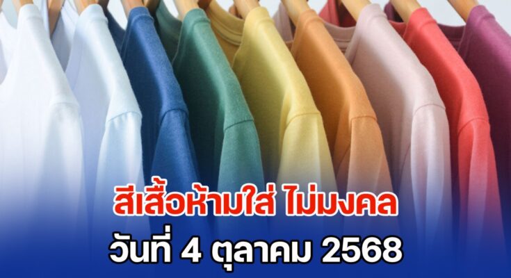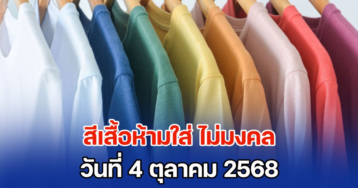 วันนี้ ทีมงานสยามนิวส์จะพาไปเปิดสีเสื้อที่ ห้ามใส่วันเสาร์ ที่ 4 ตุลาคม 68 เพราะเชื่อว่าเป็นสีกาลกิณีประจำวัน ที่แนะนำให้หลีกเลี่ยง นั่นก็คือ สีเขียว เพราะอาจจะทำอะไรติดขัด มีปัญหาอุปสรรคเข้ามาแบบไม่ทันตั้งตัว ทางที่ดีหากเลี่ยงได้ควรเลี่ยงไปก่อน ควรเปลี่ยนเป็น สีชมพู, สีเบจ เพื่อเสริมเรื่องการงาน สีแดง และ สีฟ้า เพื่อเสริมการเงิน และโชคลาภ