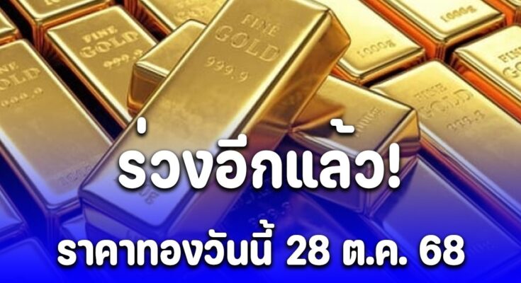 ราคาทองวันนี้ 28 ต.ค. 68 October 28, 2025October 28, 2025 - by admin01 ราคาทองวันนี้ 28 ตุลาคม 2568 โดย สมาคมค้าทองคำ ประกาศราคาทองครั้งที่ 1 (เปิดตลาด) เมื่อเวลา 09.08 น.ปรับลงพรวดเดียว 600 บาท ส่งผลให้ราคาทองล่าสุดอยู่ที่ ราคาซื้อขายทองคําในประเทศชนิด 96.5% วันอังคาร ที่ 28 ตุลาคม 2568 (ประกาศครั้งที่ 1) ทองรูปพรรณ ขายออกบาทละ 62,750 ฐานภาษีบาทละ 60,609.68 ทองแท่ง ขายออกบาทละ 61,950 รับซื้อบาทละ 61,850 เรียบเรียง สยามนิวส์