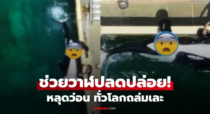 โดยในคลิปที่ถูกเผยแพร่ออกมานั้น ครูฝึกสองคนกำลังจับครีบและควบคุม “เคอิโจ” ขณะที่ “วิกิ” (Wikie) วาฬตัวแม่วัย 24 ปี ถูกแยกออกจากกันในสระน้ำใกล้เคียง