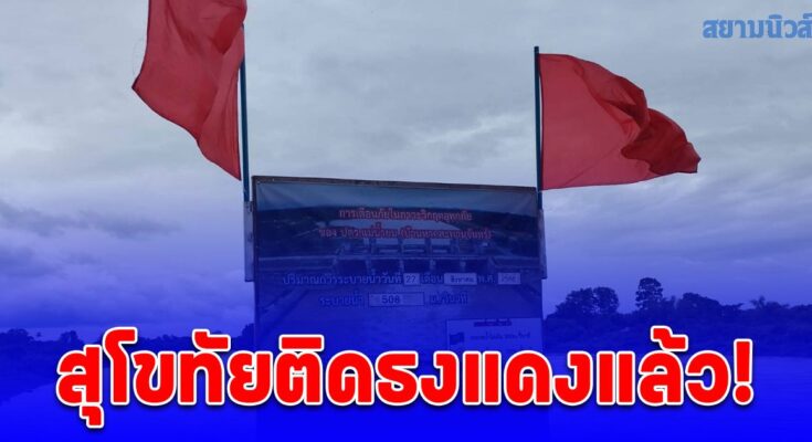 อย่างไรก็ตาม ในตัวจังหวัดสุโขทัย ก็มีการปักธงแดง แจ้งเตือนเฝ้าระวังระดับน้ำ ขอให้ทุกหน่วยงานเตรียมพร้อมขั้นสูงสุดพร้อมรับมือแม่น้ำยมจากวังชิ้น จ.แพร่ คาดว่าน้ำยมจากวังชิ้น จ.แพร่ กว่า 1,246.50 ลูกบาศก์เมตร จะถึงสุโขทัยอีกประมาณ 1-2 วันนี้