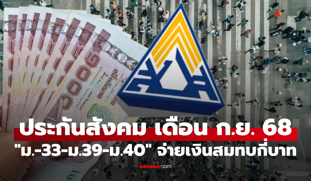 อัปเดต เงินสมทบประกันสังคม 2568 ล่าสุด ผู้ประกันตนมาตรา 33 ผู้ประกันตนมาตรา 39 และผู้ประกันตนมาตรา 40 ส่งเงินสมทบประกันสังคมงวดเดือนกันยายน 2568 เท่าไหร่ มาหาคำตอบได้ที่นี่