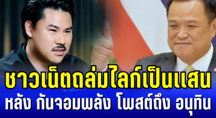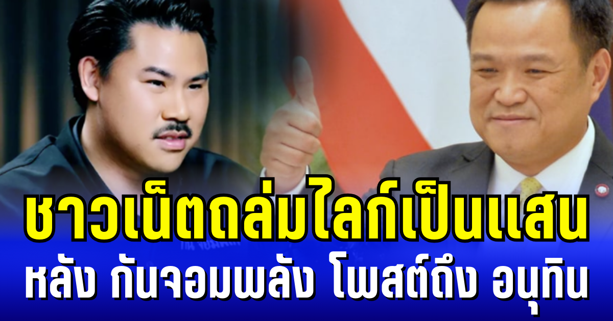 เรียกได้ว่าทำเอาชาวเน็ตเข้ามากดไลก์ กดเเชร์ เเห่คอมเมนต์กันสนั่น หลังจากที่มีโพสต์ข้อความจาก กัน จอมพลัง ซึ่งได้ออกมาโพสต์ผ่านเฟซบุ๊กส่วนตัว กันจอมพลัง ช่วยสู้ โดยระบุว่า มีคนเอาคลิปคุณอนุทินพูดชมกันจอมพลังมาลงจำนวนมากแต่ละโพสมีคนเข้าไปชื่นชมและกดถูกใจเยอะเลย นี่คือตัวอย่างการพูดชื่นชมคนอื่นสิ่งดีๆก็ย้อนกลับมาแบบรวดเร็ว