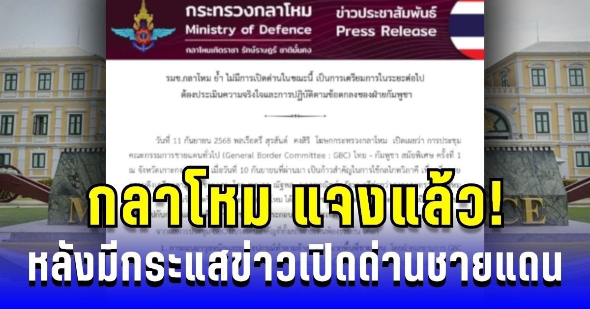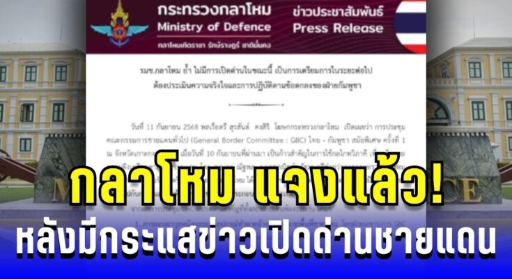 กลาโหม แจงแล้ว! หลังมีกระแสข่าวเปิดด่านชายแดนไทย-กัมพูชา