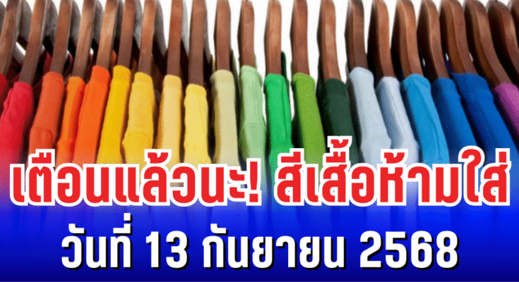 โดยสีเสื้อมงคล สำหรับวันเสาร์ ที่ 13 กันยายน 2568 มีดังนี้