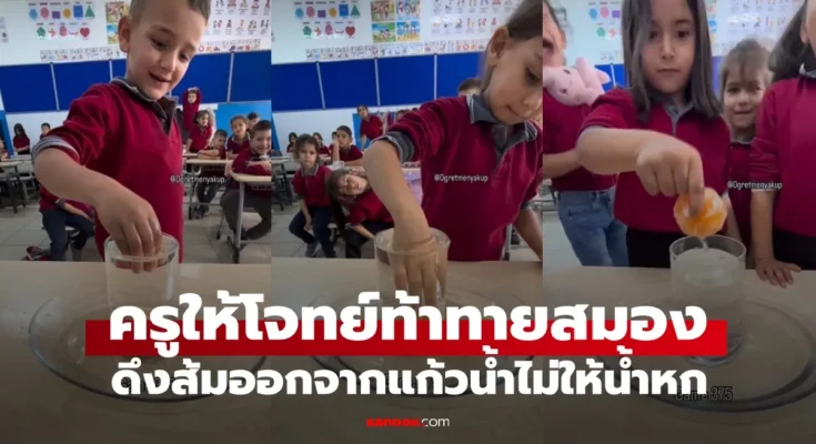 โจทย์ท้าทายสมอง: หยิบส้มออกจากแก้วโดยไม่ให้น้ำหก