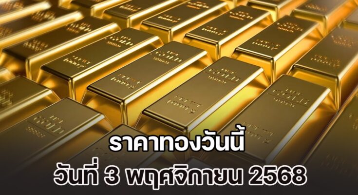 รายงานราคาทองวันนี้ประจำจันทร์ที่ 3 พฤศจิกายน 2568 ประกาศครั้งที่ 1 (เปิดตลาด) เมื่อเวลา 09.03 น. ปรับตัวลดลง 50 บาท