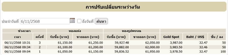 ราคาทองคำ วันที่ 6 พฤศจิกายน 2568