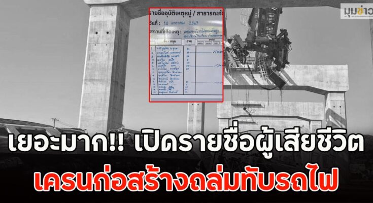 เยอะมาก!! เปิดรายชื่อผู้เสียชีวิต เครนก่อสร้างถล่มทับรถไฟ