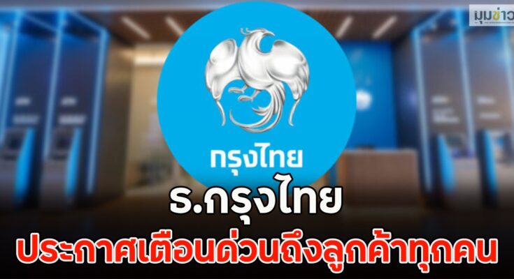 ธ.กรุงไทย ประกาศเตือนด่วนถึงลูกค้าทุกคน