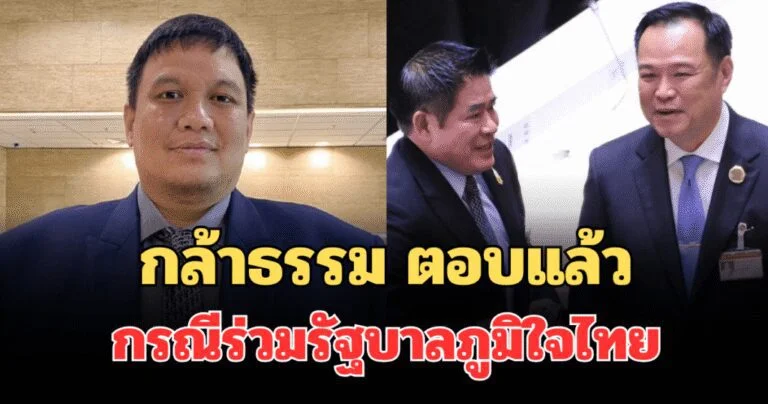 เปิดเผยถึงท่าทีการสนับสนุนพรรคภูมิใจไทยในการจัดตั้งรัฐบาล โดยระบุว่า ในวันเดียวกันได้โทรศัพท์พูดคุยประสานงานกับไชยชนก ชิดชอบ เลขาธิการพรรคภูมิใจไทย (ภท.) เรียบร้อยแล้ว พร้อมยืนยันว่าพรรคกล้าธรรมไม่มีข้อแลกเปลี่ยนหรือเงื่อนไขทางการเมืองใด ๆ ตามที่มีกระแสข่าวออกมาก่อนหน้านี้