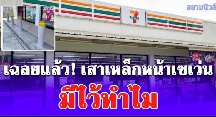 อย่างไรก็ตาม เว็บไซต์ wearecp ได้เปิดเผยถึงเสาเหล็กที่วางเรียงหน้าร้าน 7-Eleven ไว้ว่า เสาเหล็กที่วางเรียงหน้าร้านสะดวกซื้อ นั่นคือ “เสาสมอบก” อุปกรณ์ป้องกันยานพาหนะประเภทรถยนต์พุ่งชนร้านสาขา