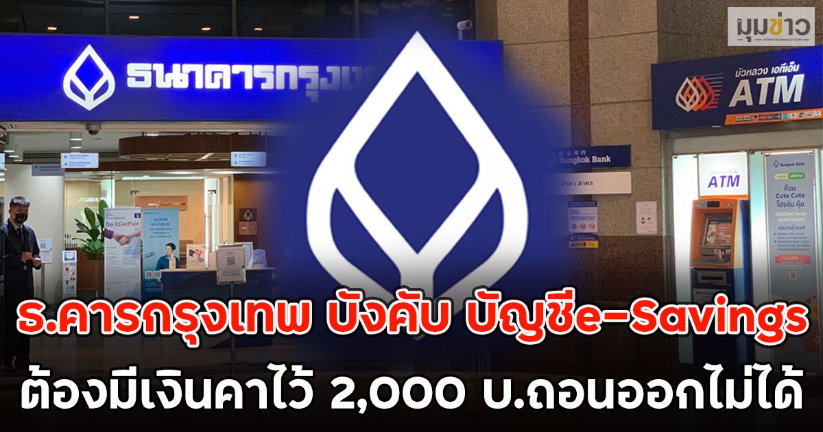 วันที่ 9 มีนาคม แบงก์กรุงเทพ ออกกฎ บัญชี e-Saving โดยระบุว่า ตั้งแต่วันที่ 9 เมษายน 2569 เป็นต้นไป ลูกค้าทุกรายต้องมียอดเงินคงเหลือในบัญชีขั้นต่ำ 2,000 บาท ลูกค้าไม่สามารถทำรายการถอน/โอน หรือธุรกรรมอื่นใดที่ส่งผลให้เงินออกจากบัญชี จนทำให้ยอดเงินคงเหลือในบัญชีต่ำกว่า 2,000 บาทได้ ยกเว้น (1)