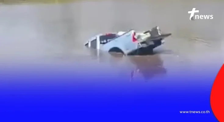 เจ้าของรถเล่าต่อว่า ตอนนั้นทำอะไรแทบไม่ถูก เพราะรถล็อกและกุญแจก็อยู่ข้างใน จึงพยายามดึงรถเอาไว้ แต่ไม่สามารถต้านแรงได้ สุดท้ายรถก็ไหลตกลงไปในสระน้ำและจมหายไปต่อหน้าต่อตา