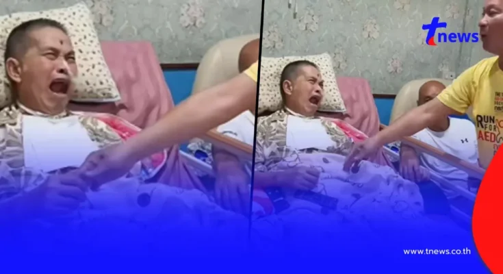 โดยในคลิป เด๋อ ดอกสะเดา ถึงกับปล่อยโฮร้องไห้ทันที หลังได้เห็นหน้า หม่ำ จ๊กมก จากนั้นก็จับมือด้วยความดีใจ ขณะที่เพื่อนดาราตลกคนอื่นก็ร่วมให้กำลังใจ