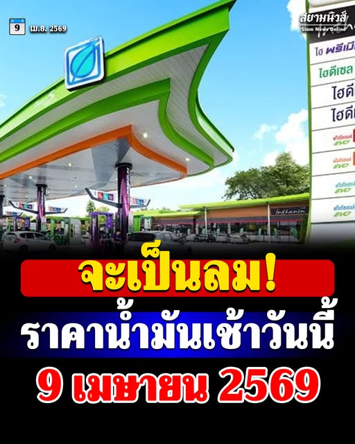 สำนักงานนโยบายและแผนพลังงาน กระทรวงพลังงาน ประกาศ ราคาน้ำมันวันนี้ 9 เมษายน 2569 จาก 5 สถานีบริการปั๊มน้ำมัน ได้แก่ ปตท., บางจาก, เชลล์, คาลเท็กซ์ และ PT ภายหลังที่ มีการประกาศปรับลด ราคาดีเซล 2.14 บาท/ลิตร มีผล เวลา 05.00 น. วันนี้ โดยราคาล่าสุดมีดังนี้