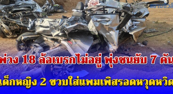 News สลดรับสงกรานต์ พ่วง 18 ล้อเบรกไม่อยู่ พุ่งชนยับ 7 คัน ดับคาที่ 2 เจ็บ 8 เด็กหญิง 2 ขวบใส่แพมเพิสรอดหวุดหวิด