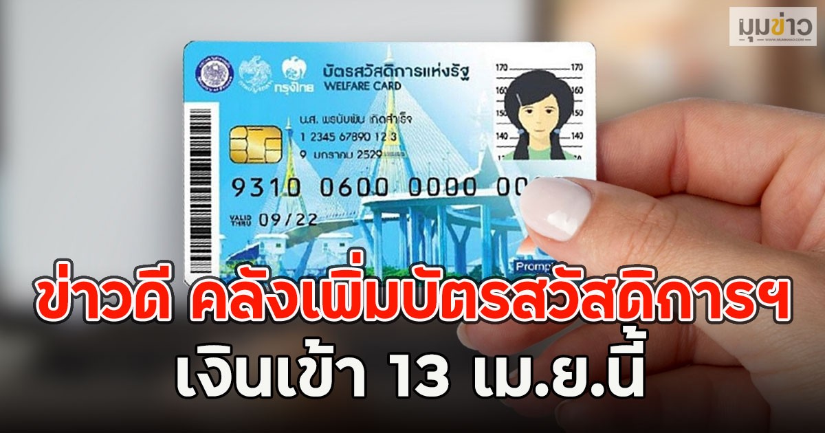 ข่าวดี คลังเพิ่มบัตรสวัสดิการฯ เงินเข้า 13 เม.ย.นี้