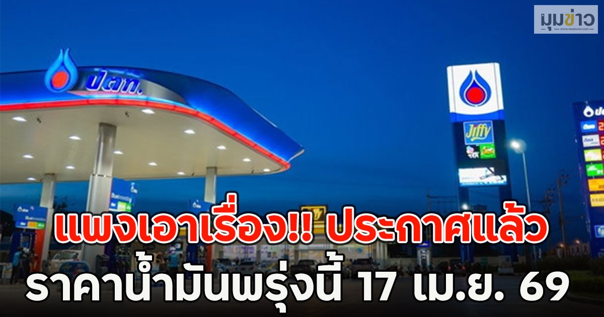 ราคาน้ำมันพรุ่งนี้ (17 เม.ย. 69) บางจาก ปตท. อัปเดตราคาล่าสุด