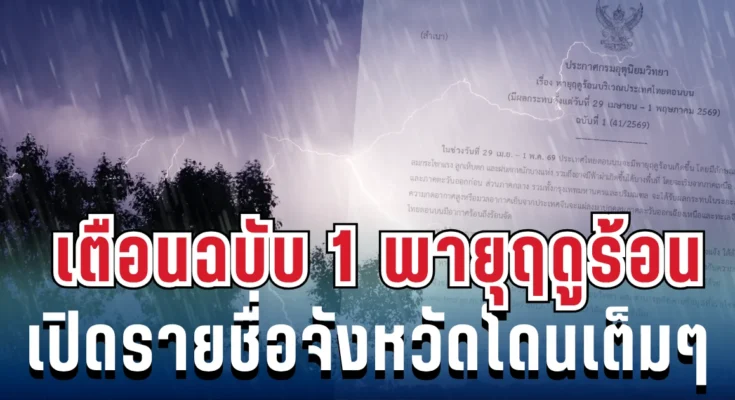 วันที่ 27 เมษายน 2569 กรมอุตุนิยมวิทยา ออกประกาศฉบับที่ 1 (41/2569) เตือน พายุฤดูร้อนถล่มประเทศไทยตอนบน ระหว่างวันที่ 29 เมษายน – 1 พฤษภาคม 2569 ครอบคลุมหลายพื้นที่ทั่วประเทศ