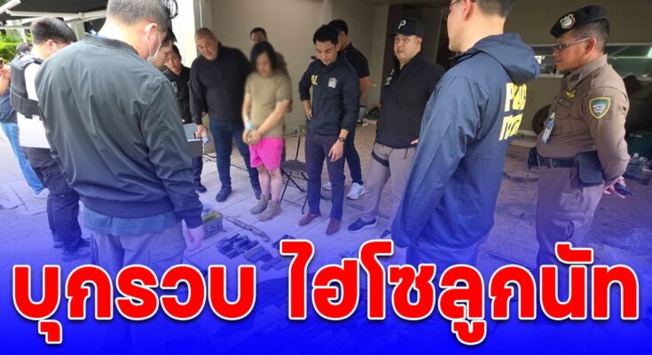 สืบเนื่องจากเจ้าหน้าที่ตำรวจชุดจับกุม ได้รับแจ้งจากพลเมืองดีและผู้เสียหายนางสาวบี ไม่ประสงค์ออกนาม ว่า ตนเองได้ถูกชายภายหลังทราบชื่อเล่นว่า นายธนัตถ์ ธนากิจอำนวย หรือ ไฮโช ลูกนัท หลังได้เข้าไปดื่มสังสรรค์ภายในบ้านเลขที่ 1104/351 โครงการโนเบิ้ล คิวบ์ ถนนพัฒนาการ แขวงสวนหลวง เขตสวนหลวง กรุงเทพมทานคร หลังจากนั้น นายธนัตถ์ หรือ ไฮโซลูกนัท ได้ทำการเสพยาเสพติดและเริ่มมีพฤติกรรมข่มขู่และทำร้ายตน โดยได้ใช้อาวุธปืนข่มขู่บังคับให้ตนเสพยาเสพติดด้วย แต่ตนปฏิเสธไม่เสพยาเสพติดจึงถูกทำร้ายโดยใช้อาวุธปืนข่มขู่และตบที่ศีรษะ จึงต้องเสพยาเสพติดตามที่ไฮโชคนดังกล่าวบังคับ เมื่อไฮโซลูกนัทหลับเพราะฤทธิ์ยาเสพติด ตนจึงถ่ายภาพในที่เกิดเหตุและหลบหนีออกมาจากบ้านหลังดังกล่าวเมื่อหลบหนีออกมา น.ส.บี เกิดความเครียดและความกลัวในชีวิต จึงได้ต่อมาแจ้งความร้องทุกที่ กองกำกับการสวัสวัสภาพเด็กและสตรี (กก.ดส.) เจ้าหน้าที่ตำรวจชุดตรวจค้นจับกุมจึงได้ทำการรวมหลักฐานขอหมายค้นเข้าตรวจตามหมายค้นดังกล่าวจนพบของกลาง ขณะเข้าตรวจค้น ไฮโซลูกนัทอยู่ในอาการมึนเมาคล้ายคนเสพยาเสพติด แต่มีสติและพูดคุยรู้เรื่องและนำเจ้าหน้าที่ตำรวจในการตรวจค้น