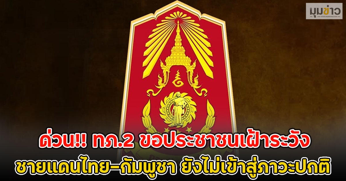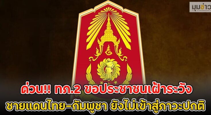 ด่วน!! ทภ.2 ขอประชาชนเฝ้าระวัง ชายแดนไทย-กัมพูชา ยังไม่เข้าสู่ภาวะปกติ