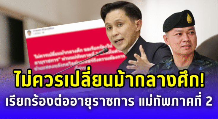 ไม่ควรเปลี่ยนม้ากลางศึก ขอเรียกร้องให้ ต่ออายุราชการ ท่านแม่ทัพภาคที่ 2 ใครเห็นด้วยช่วยแสดงพลังกดไลค์และแชร์ถึงความต้องการนี้ด่วน